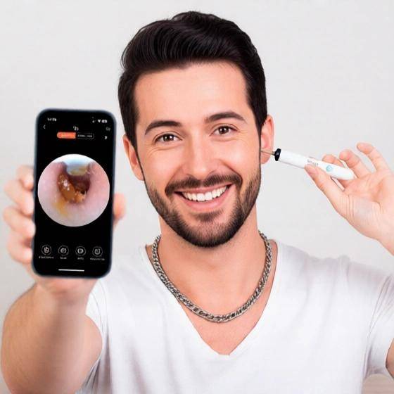 Camear est l’outil idéal pour tous ceux qui recherchent un nettoyeur d’oreilles moderne, précis et simple à utiliser ! Son utilisation est un véritable jeu d’enfant. Grâce à sa caméra haute définition intégrée, vous pouvez visualiser l’intérieur de votre oreille en temps réel directement depuis votre smartphone, pour un nettoyage sûr et parfaitement maîtrisé. Son embout en silicone souple assure un confort optimal et évite toute irritation. Que ce soit pour un usage personnel ou familial, le Camear offre une expérience pratique, hygiénique et totalement sécurisée.